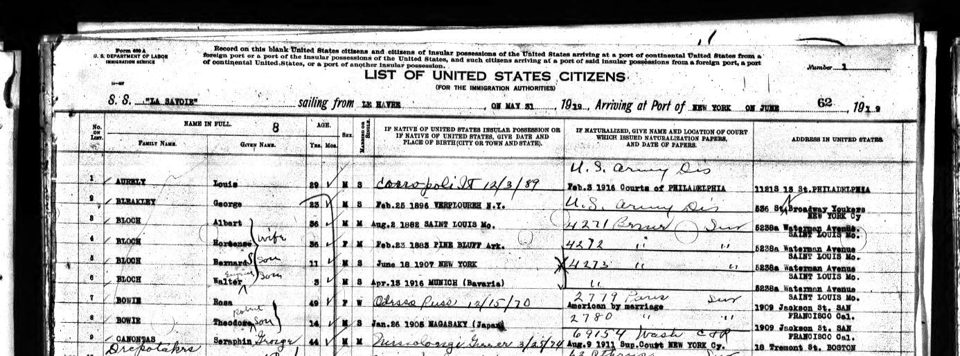 Rosa Bowie - Le Havre, 1919 |