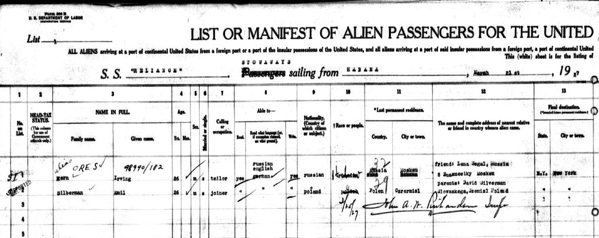 Havana, 1927 (as a stowaway!)