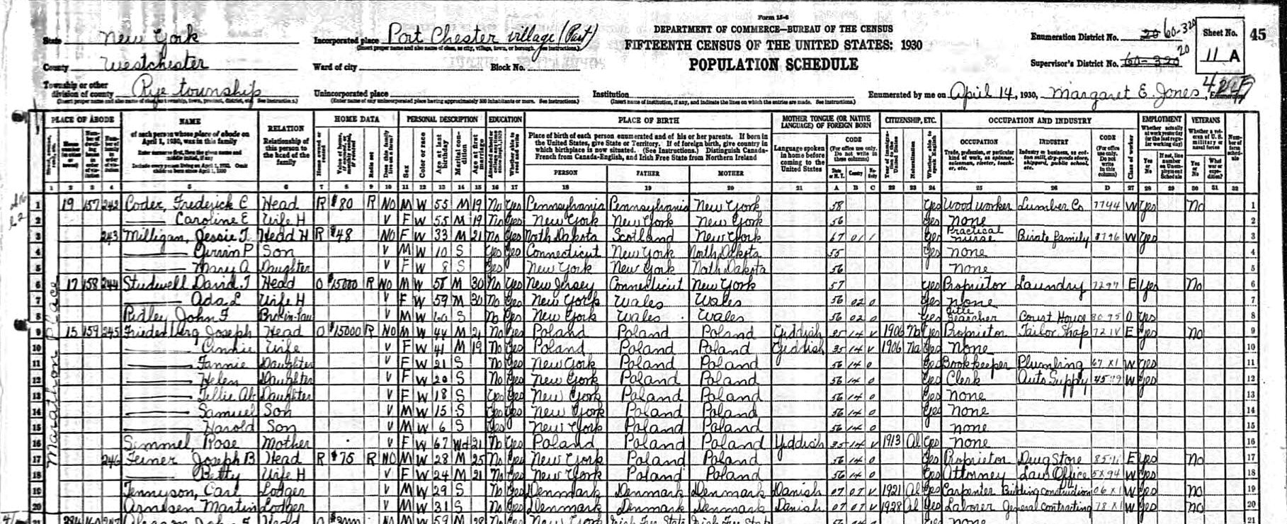 Friedenberg Census - Port Chester, 1930 |