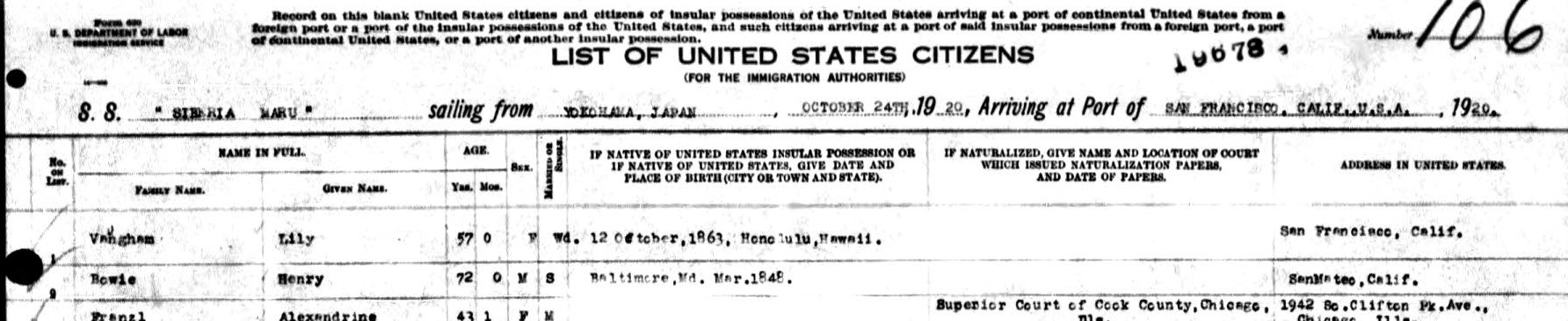 Bowie - Yokohama, 1920 |