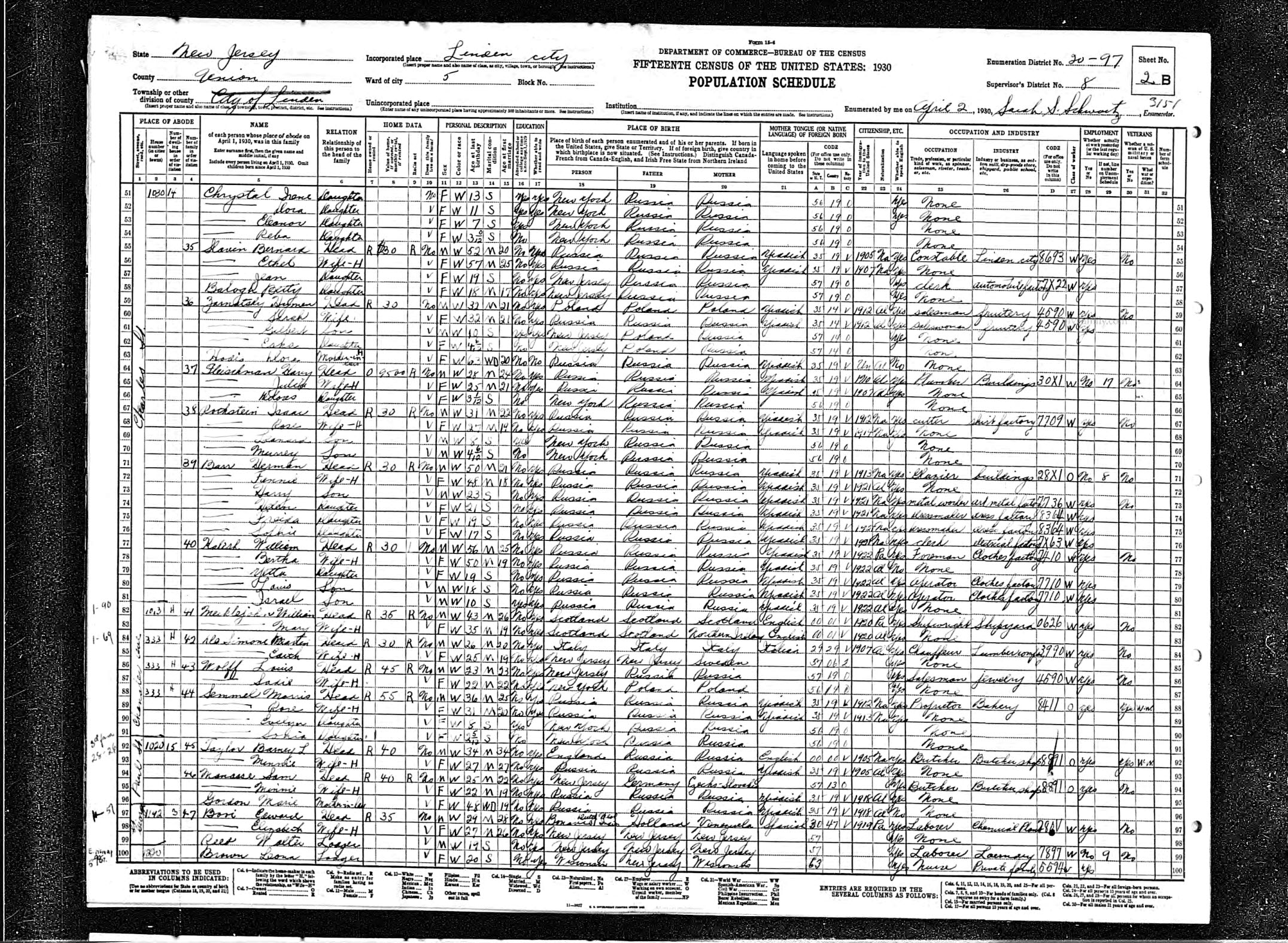 Semmel Census - Linden, NJ, 1930 |