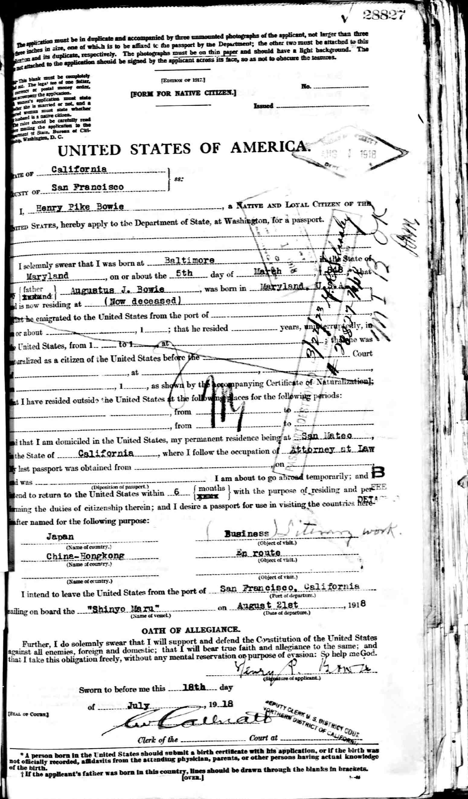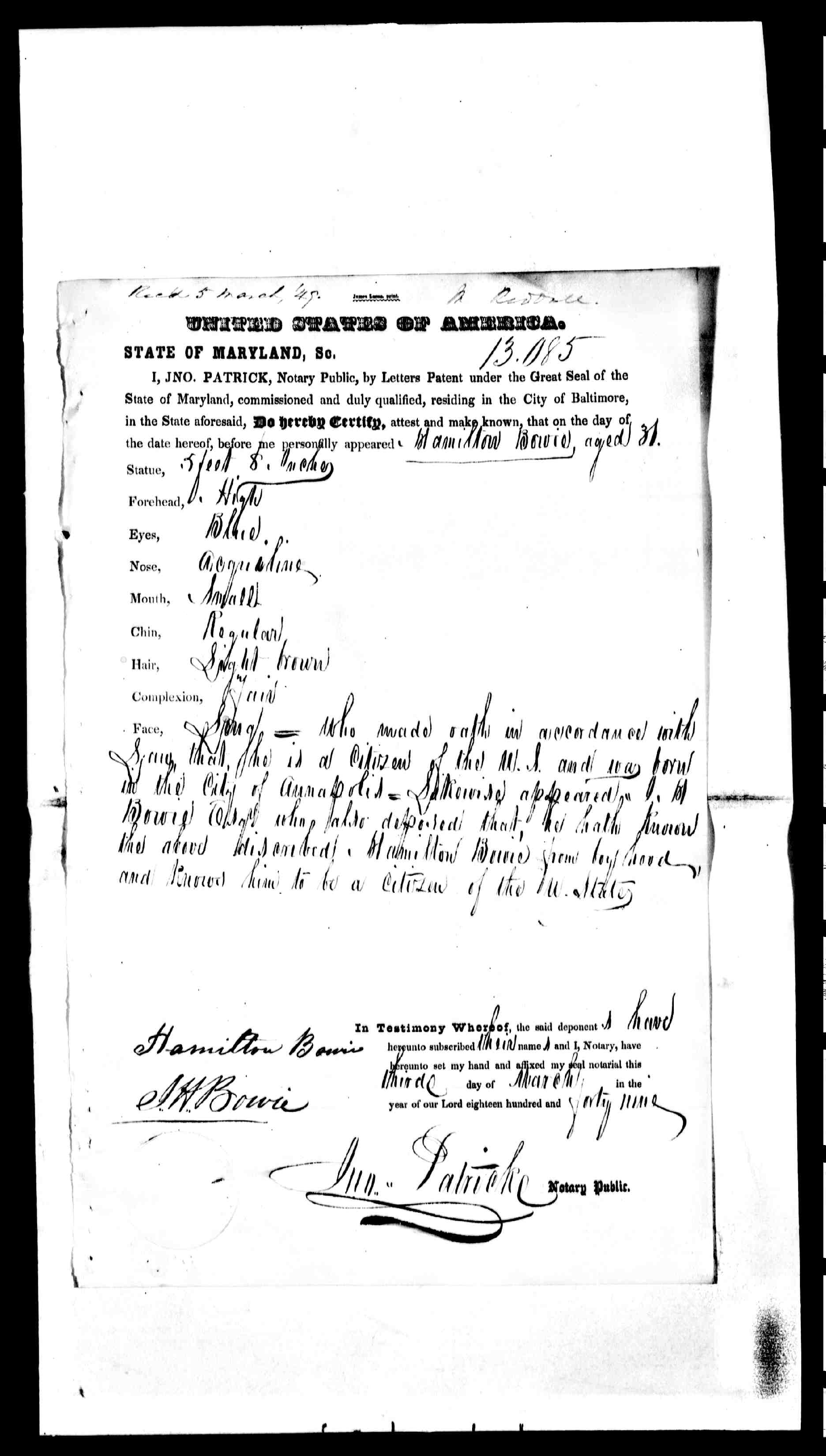 | Henry Pike Bowie - Passport
